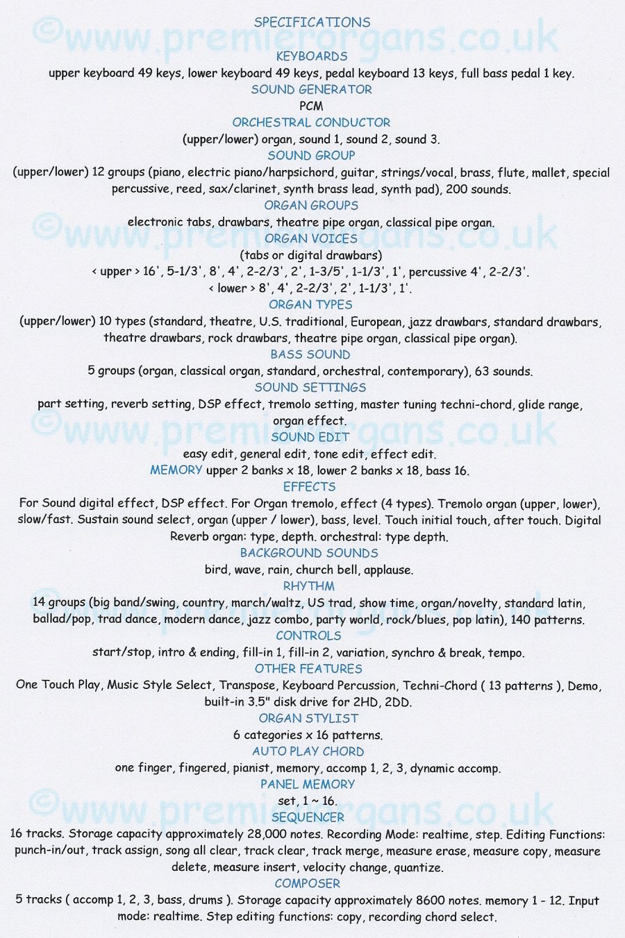 The contents of this website may not be reproduced, republished or mirrored on another web page or website without written permission from Premier Organs.