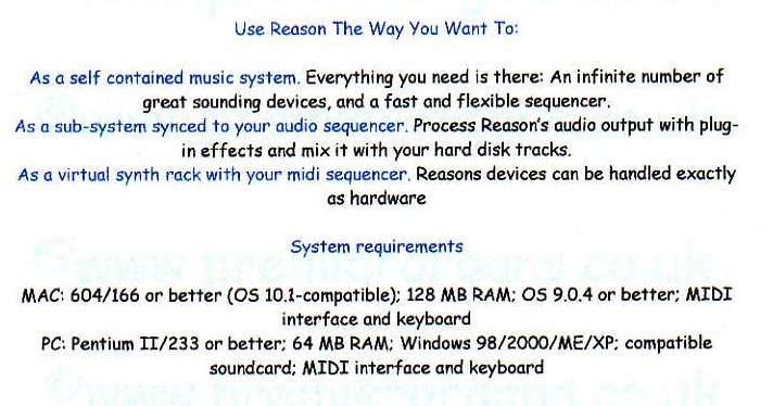 A stand alone music production software package - an infinitely expandable studio rack that turns your computer in to an all-in-one music production station. Reason 2.5 propellerhead