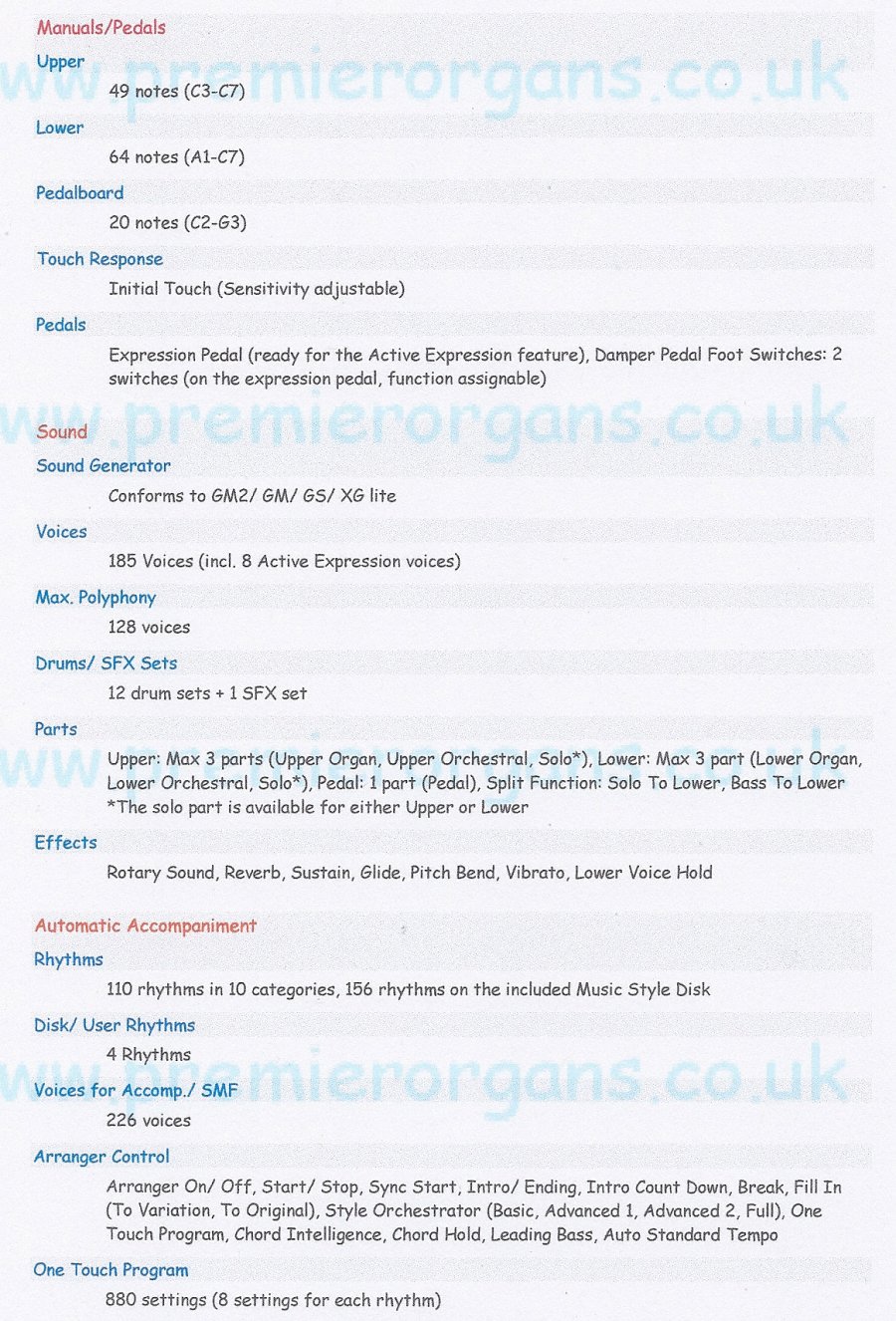 100 music styles (most featuring live-drums), 800 One Touch programs
