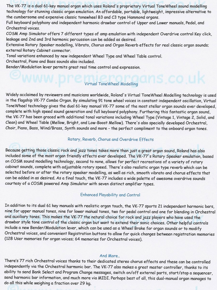 Roland VK-77 VK77 VK 77 combo organ two manual version of Roland VK7 VK-7 VK 7. Keyboard. Drawbars. Hammond B3 A100 C3. Portable organ.