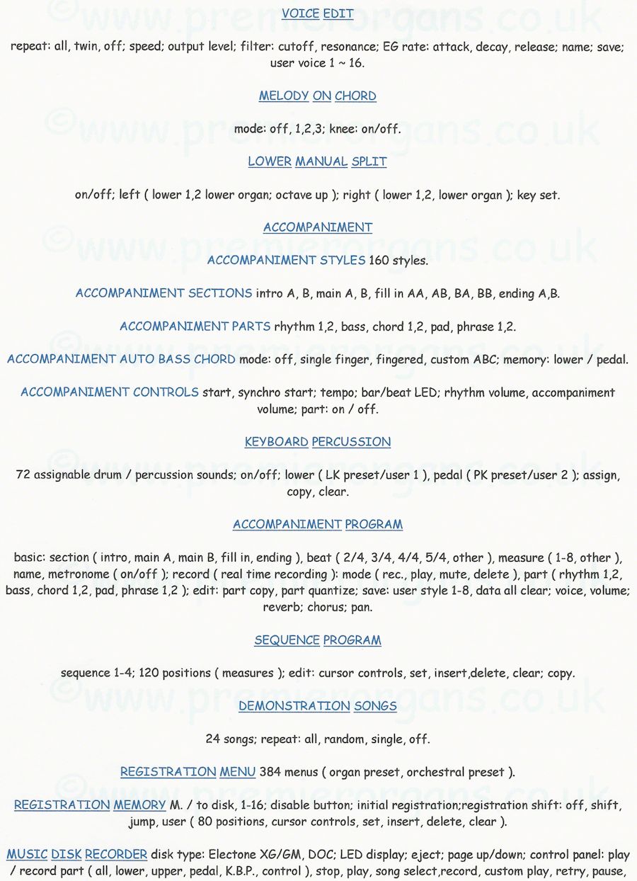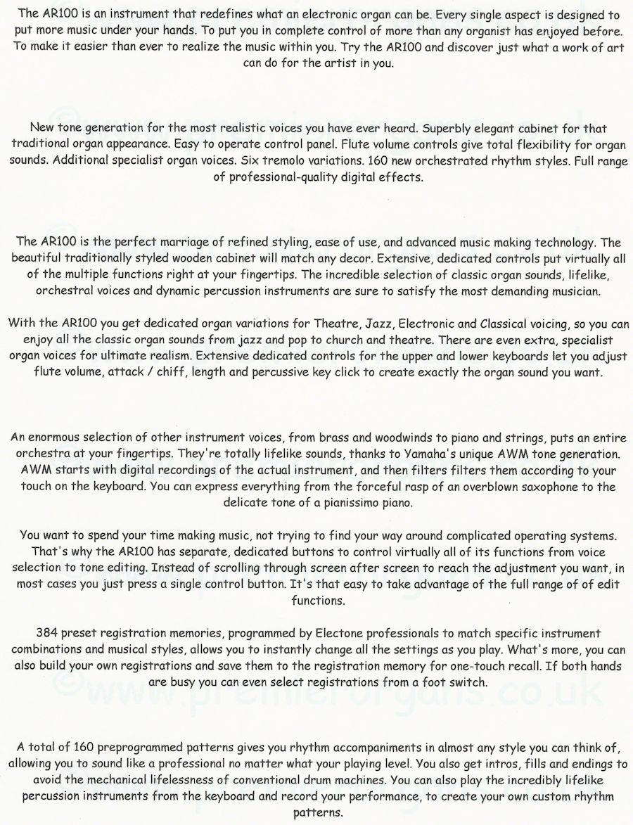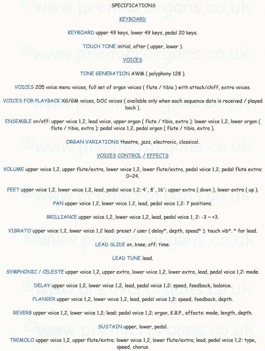 page or website without written permission from Premier Organs.