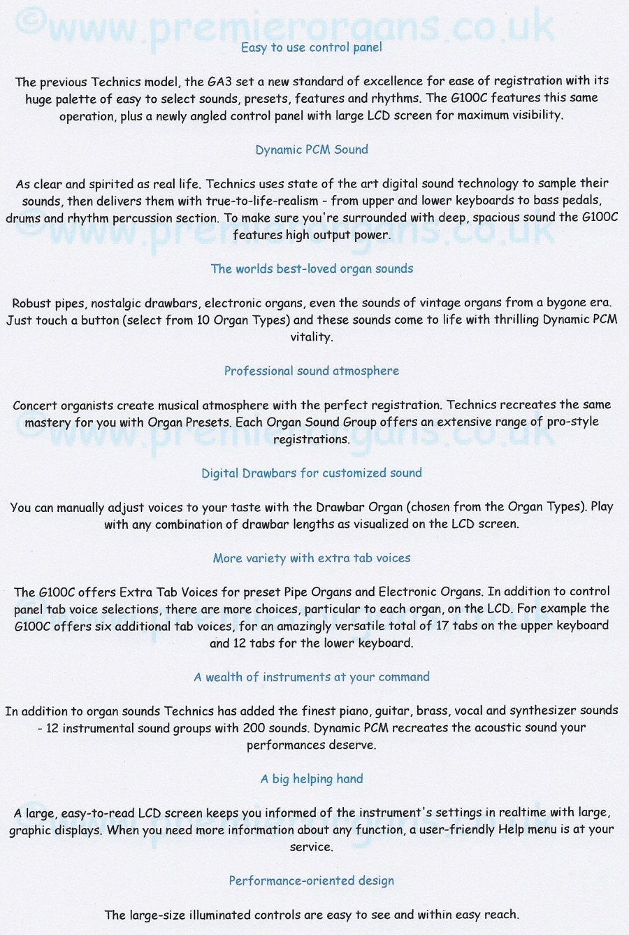 The contents of this website may not be reproduced, republished or mirrored on another web page or website without written permission from Premier Organs.