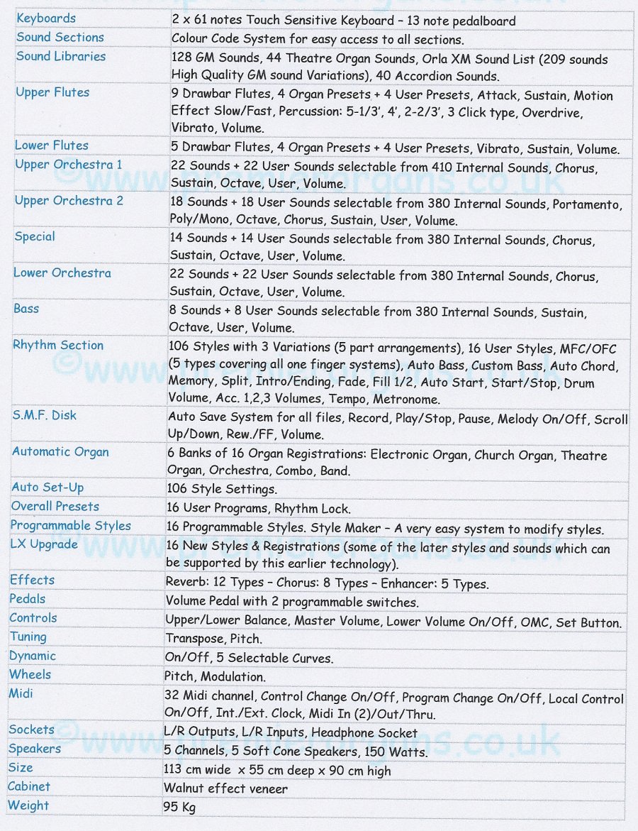 GT 8000 GT-8000 The GT8000 GT 8000LX GT 8000 LX GT-8000LX warmth depth of tone associated with Orla products remains whilst the 5 speaker soft cone amplification system Ease of use has always been a priority in the design of Orla products and the GT8000 is no exception. Over 200 instant registrations real Flutebars XR reality sounds provide extra high quality orchestral voicing and with over 40 dedicated Theatre Organ Samples