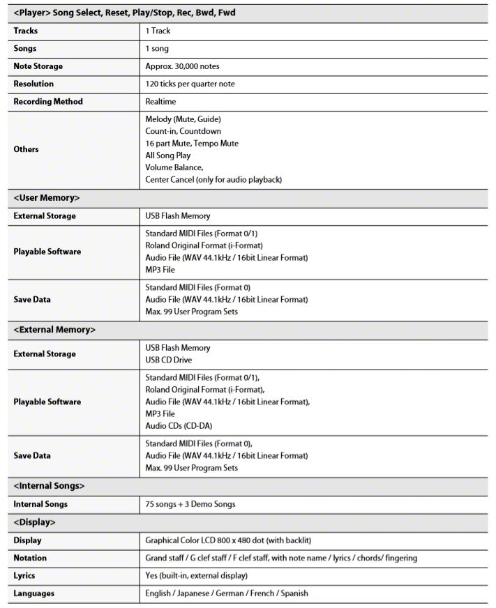 Roland's finest 88-note stereo sampled grand piano onboard, plus hundreds of other top-quality sounds for complete backing-band enhancement
